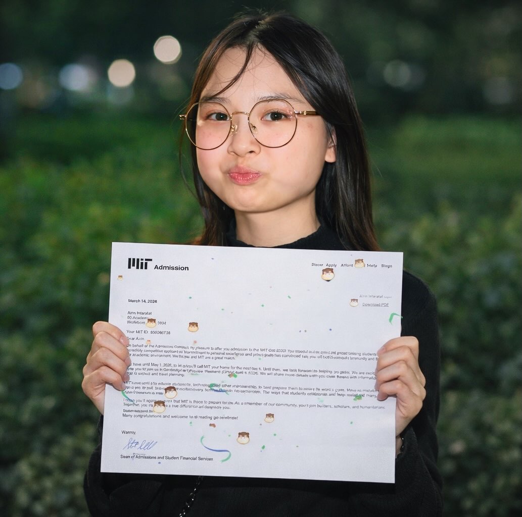 Congratulations to Airin Gam Intaratat on being accepted to MIT :)