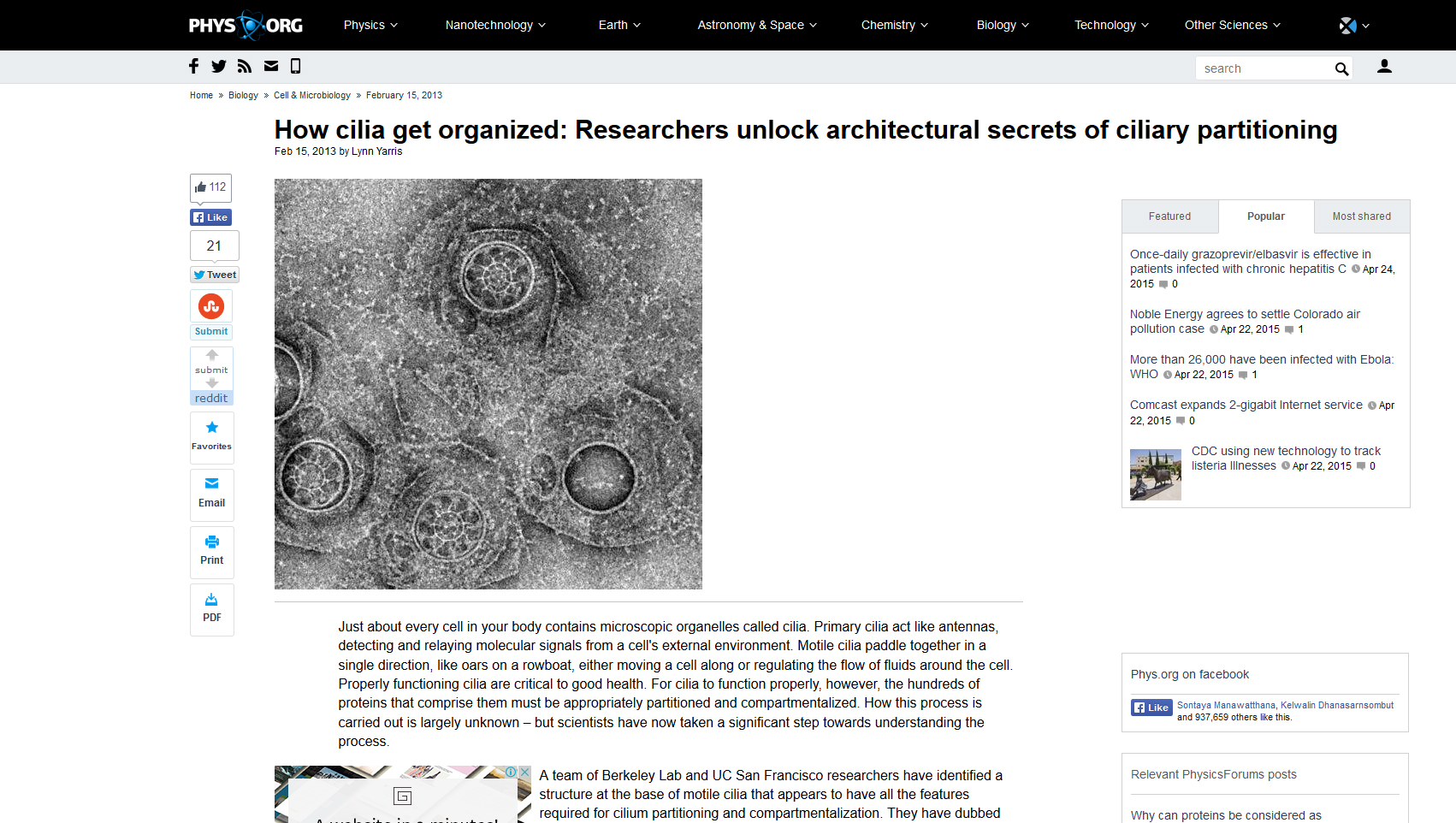 Physics org : Researchers unlock architectural secrets of ciliary partitioning